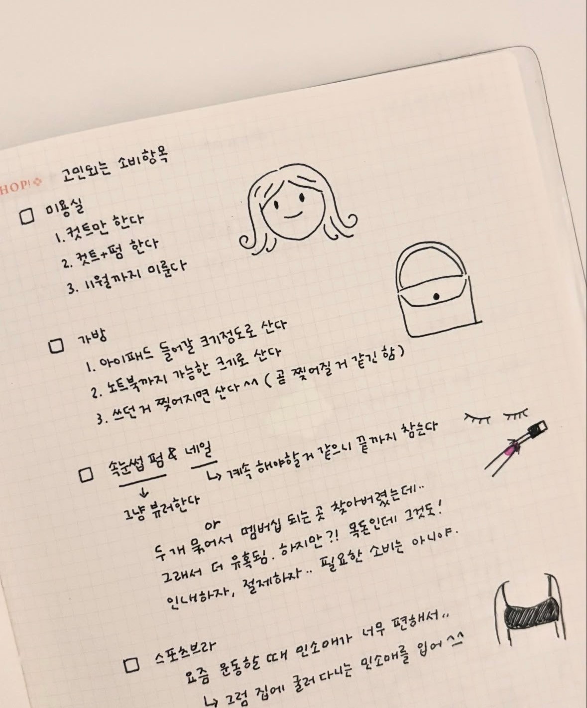 위 사진처럼, 소비가 고민되는 항목들부터 가볍게 나열해 보면서,